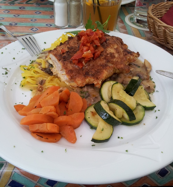 Ja und das war ebenfalls sehr lecker! Das Fleisch war sehr zart, die Tagliatelle könnten hausgemacht gewesen sein und die Pilze haben frisch geschmeckt! Zudem war das Schnitzel noch mit Käse und Spinat gefüllt.