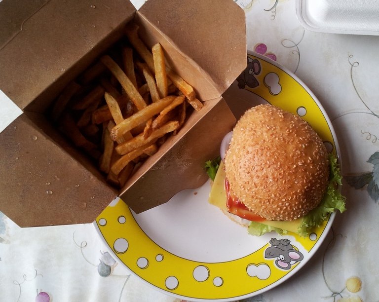 Getestet hab ich dann den Cheeseburger und die Currywurst.