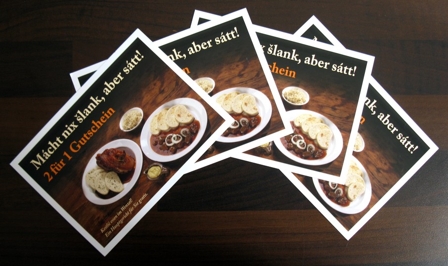 Wer Lust hat mit mir und auf meine Kosten essen zu gehen, der hat jetzt die Gelegenheit. Genauer gesagt war die Wenzel Bierstube so freundlich und hat Gutscheine ausgeteilt 😉 – Iss für 2 zahl nur 1…
